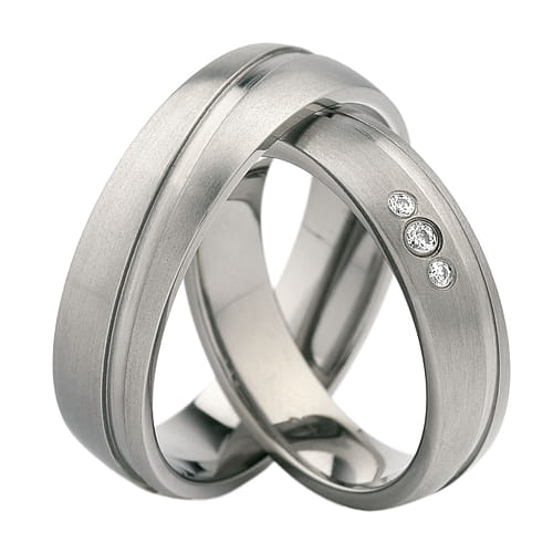 Obrączki z tytanu z 3 diamentami 0-04ct