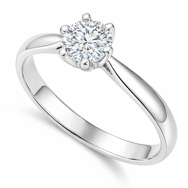 - Oprawa sześcioramienna łącząca estetykę klasycznej korony z bezpiecznym osadzeniem diamentu.