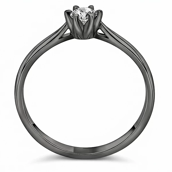 Projekt, który redefiniuje klasyczną elegancję poprzez świadomy kontrast i nowoczesną formę. Ten pierścionek, w nazwie handlowej określany jako model z „czarnego złota”, został stworzony dla osób poszukujących w jubilerstwie czegoś mniej oczywistego niż tradycyjne kruszce. Jego siła tkwi w wizualnym magnetyzmie: głębokie, ciemne wykończenie stanowi idealne tło dla czystego blasku diamentu, wydobywając z niego maksimum światła.