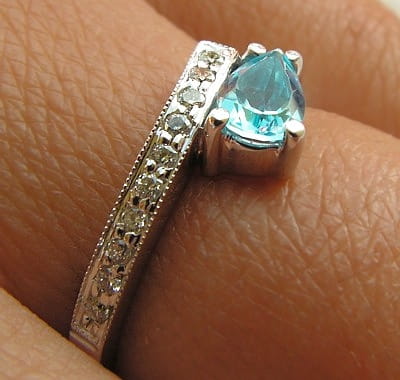 Pierścionek z 14k złota z topazem 0-61ct i 10 diamentami 0-09ct marki Górecki