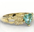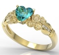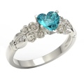 Pierścionek z 14k złota z topazem Swarovski serce 1ct i 6 diamentami 0-03ct